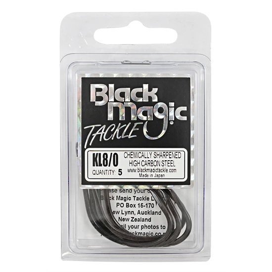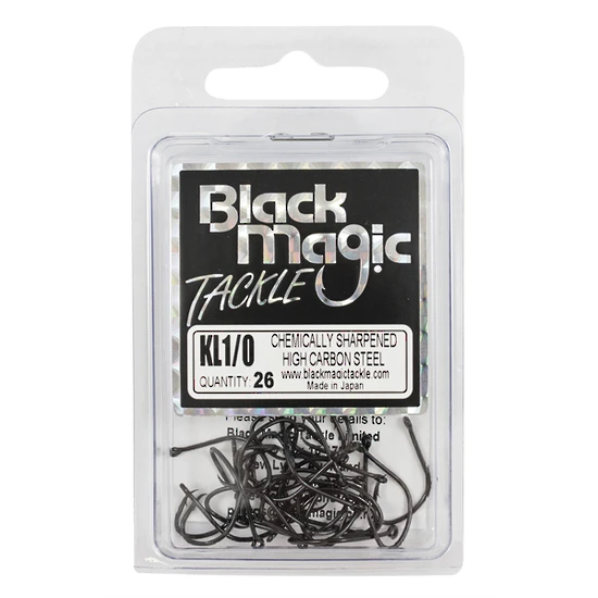 The Black Magic KL Hook Range is a unique cross between a longline hook and a wide gape hook. They are great for deep water fishing and surfcasting. The recurve design ensures most fish are ‘self-hooked’ in the corner of the mouth.