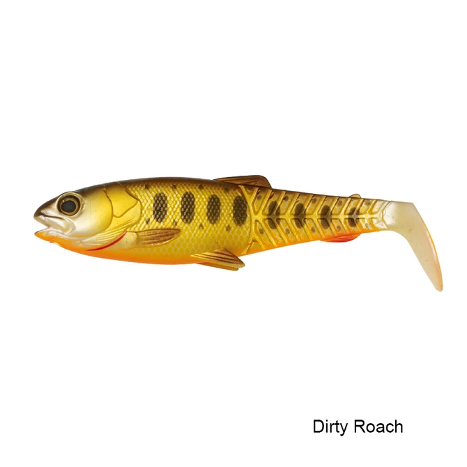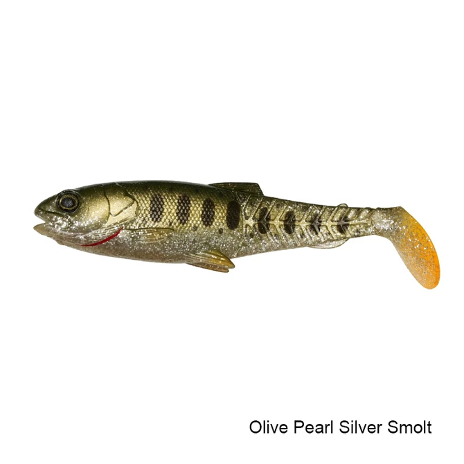 Crafted and designed by legendary designer Mads Grosell. The lure profile is inspired by a baby trout smolt, with the classic Cannibal open mouth, a realistic big soft eye and a new unique tail bridge design, that enables the lure to swim amazingly life-like even at very slow speed. The lure swims equally well on retrieve and as on the drop and the tooling making and handcrafted details and painting set new standards for soft lure making! This paddle tail loose body lure will catch just about any predator fish out there!