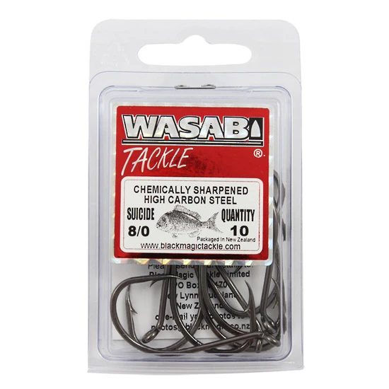 The Wasabi Suicide Hooks are a good all-round affordable hook made out of high carbon steel. This range is the best selling hook in Australasia.